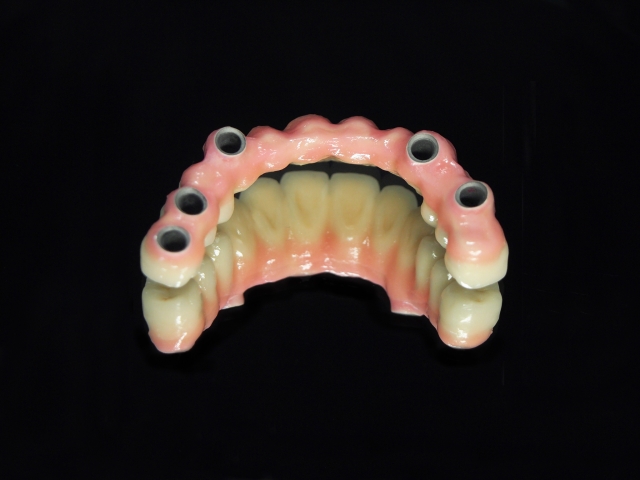 義歯をインプラントに固定し、噛み合わせやフィット感を微調整します。