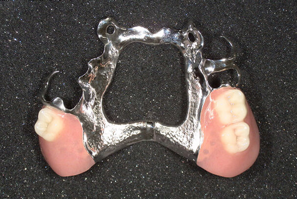 噛む力が強く、ご自身の歯を傷めてしまうほどでした。 さらに、失った歯の範囲が広いため、ブリッジは適応できません。
