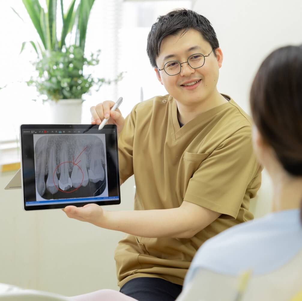 来院いただくことで、現在のお悩みを直接お聞かせください。詳細なお口の中の状況を把握し、適切な治療方法について分かりやすく、丁寧に説明いたします。